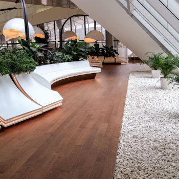 Coswick engineered plank hardwood flooring from European Oak, color Walnut is installed in the building.