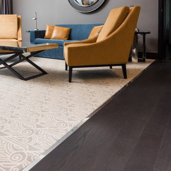 Coswick plank hardwood flooring from Oak Dark chocolate is used in the project.