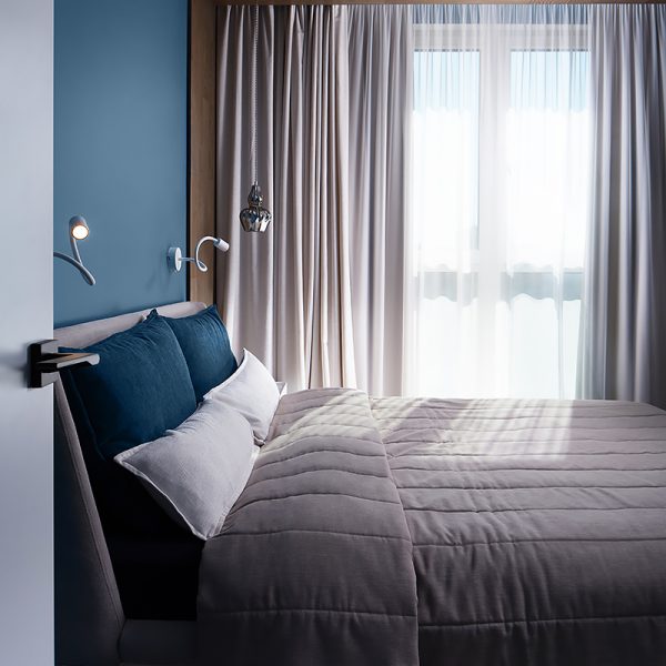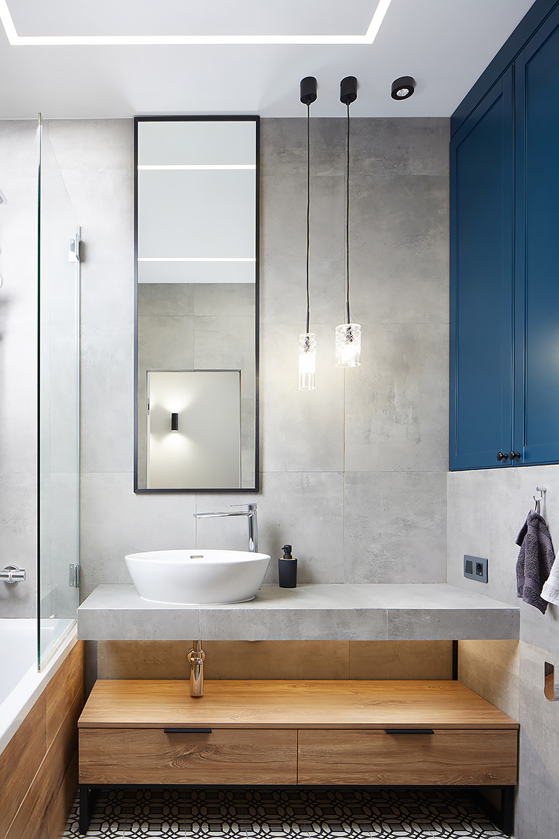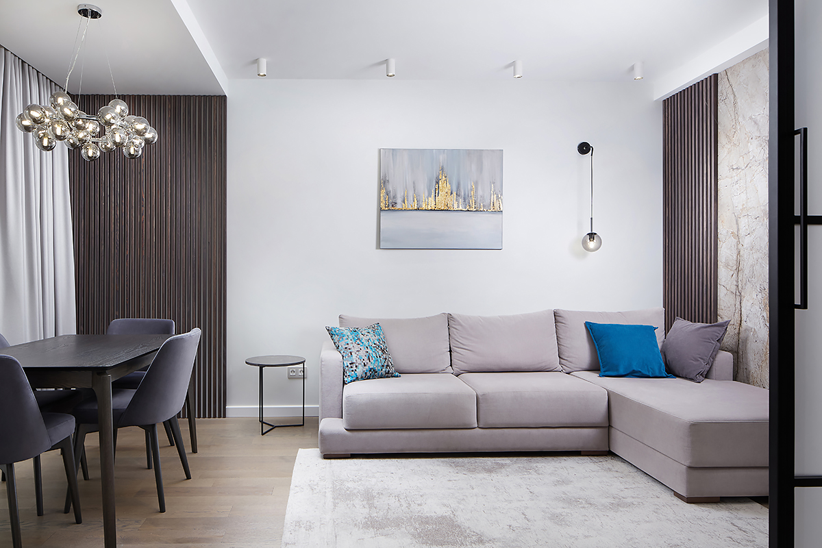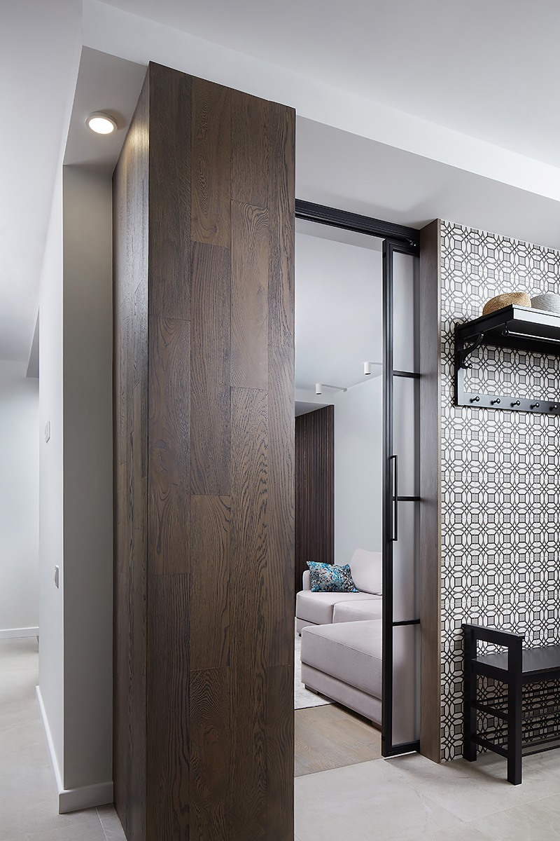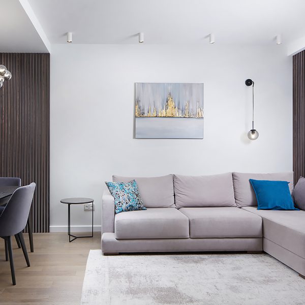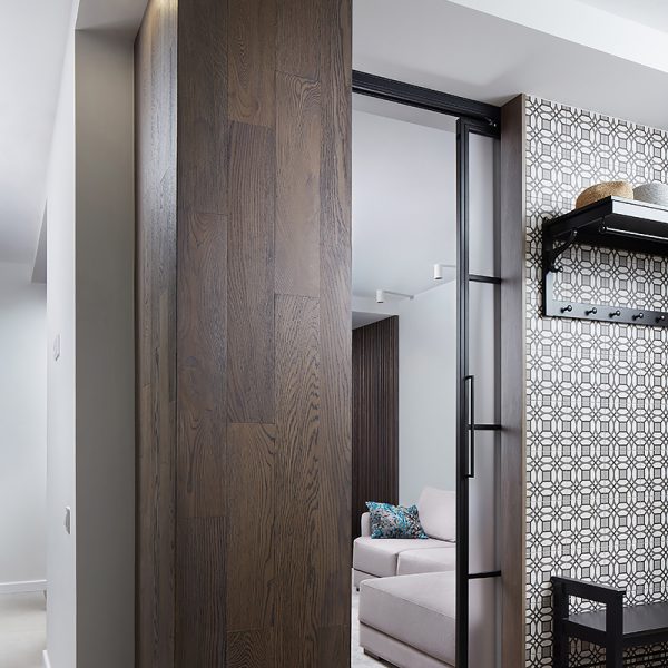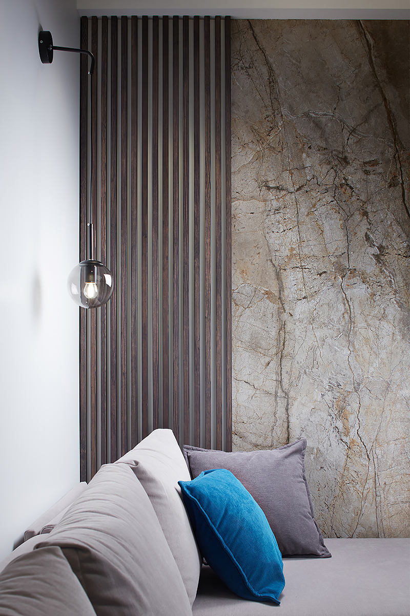 “We wanted to make a hygge-style apartment within Belarusian context, cosy, familiar and comfortable. For that we’ve chosen what I think is the best reference, Polotskian sights of the northern Belarus. Combining grey-blue walls and Rocky Reef Coswick flooring was, in my opinion, the best rhyme in the design of this apartment”.