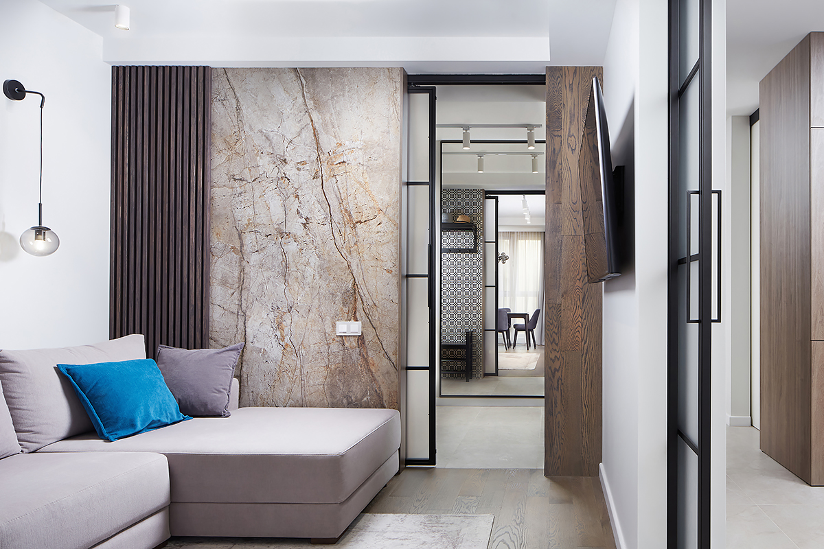Coswick-Rocky-Reff-Tav-Silk finish-12An interior design that calms and radiates a feeling of safety, helps relax amidst the rapid city bustle. Laconic and functional design, neutral and muted tones, high-quality natural materials are age-old ingredients to the recipe for homely comfort. Warmth and stylistic emphasis are underscored by natural wood and contrast with the cold texture of marble.