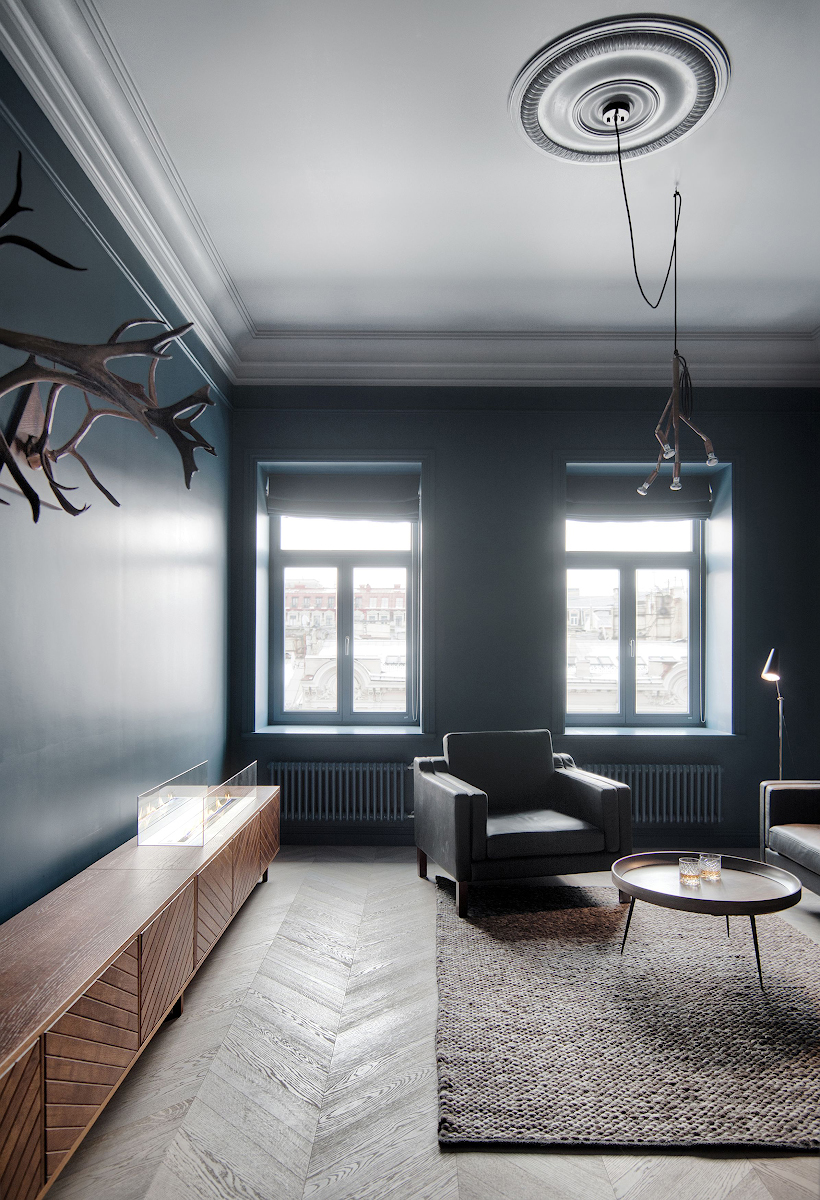 Still young in their architectural career, Aleksandr Malinin and Anastasiya Sheveleva, transformed the top floor of the XIX century rental apartment building into a modern-day penthouse. This transformation received second place in an international competition in the category of “Interior Design of a City Apartment 100m2+.”