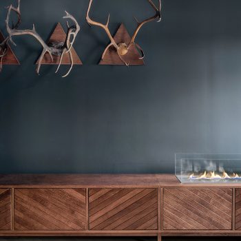 The attention that was given to the wood texture is what fills the room with life and energy: the light tone of oak hardwood floors in the chevron pattern, trims of birch, and vintage furniture of teak. The designer’s love for wood is delicately displayed by acknowledging all the nuances, and skillfully linking them to create a complete masterpiece.